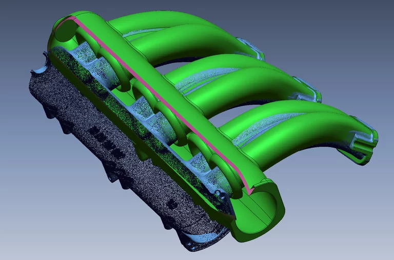 Auf Basis dieser Scandaten erfolgt bei uns die "parametrische Flächenrückführung", aus dem ein CAD-Modell erstellt wird, das uns die Herstellung einer präzise Kopie des gescanten Objektes ermöglicht.